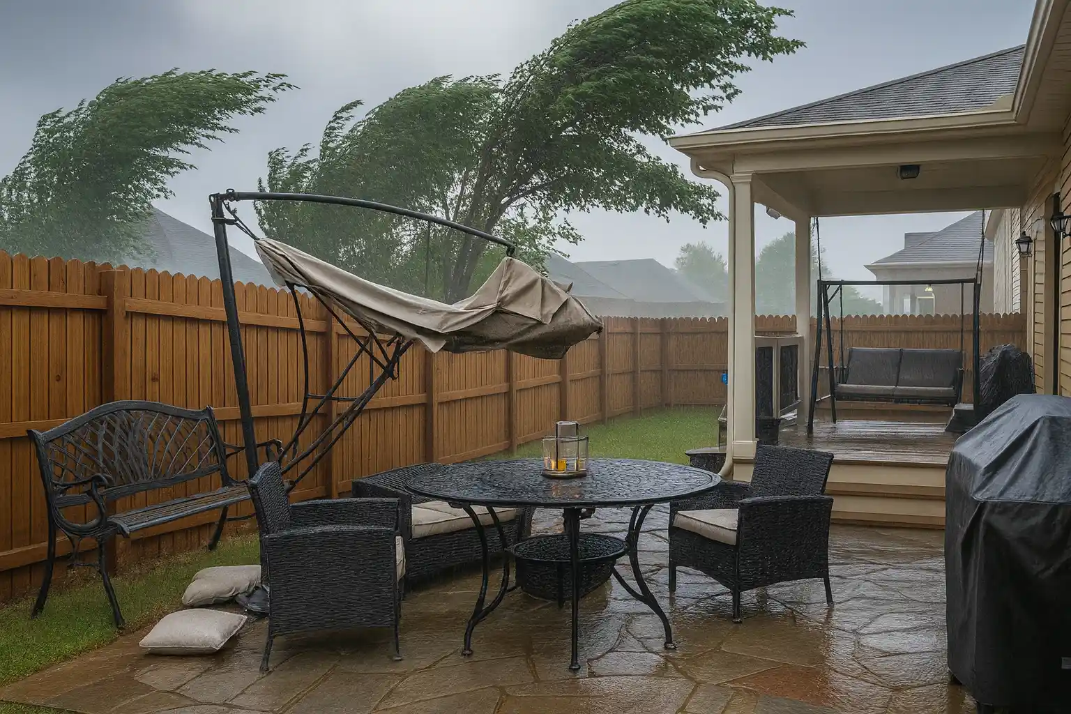 When winds pick up, anything that isn’t bolted down becomes a potential projectile. Even heavy items like fire pits or dining sets can shift or topple when gusts reach 40–60 mph — which isn’t uncommon in parts of the Southeast, Midwest, and Gulf Coast.